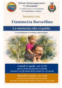 Si comunica che, nell’ambito del progetto “Costruire futuro: percorsi di legalità, memoria e impegno civile”, il nostro Istituto ospiterà la dott.ssa Fiammetta Borsellino, testimone significativa e voce impegnata nella diffusione dei valori di giustizia e responsabilità. L’iniziativa intende offrire agli studenti un’importante occasione di riflessione sui temi della cittadinanza attiva, della memoria delle vittime innocenti delle mafie e dell’impegno civile.